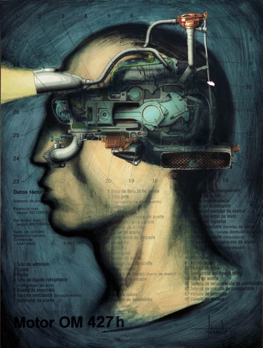 Fernando Vicente es un reconocido ilustrador madrileño. La obra como pintor se caracteriza por la presencia constante de la figura humana combinada con otros elementos que el autor ha ido coleccionando a lo largo de su vida.